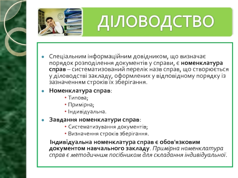 Номенклатура справ та формування документів у справи