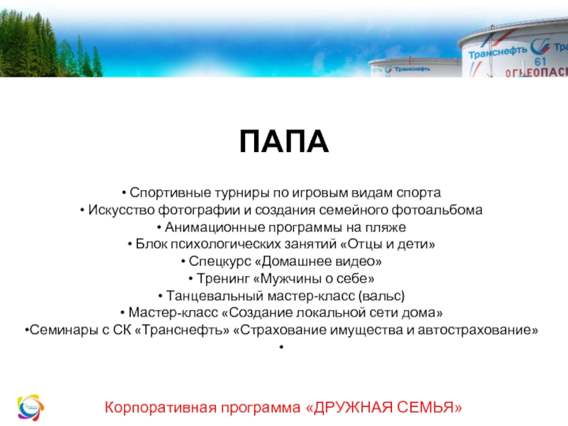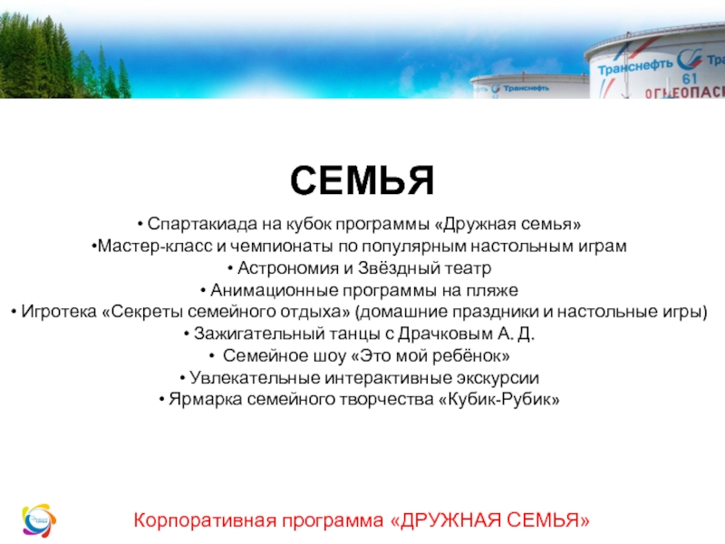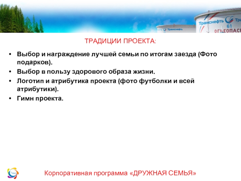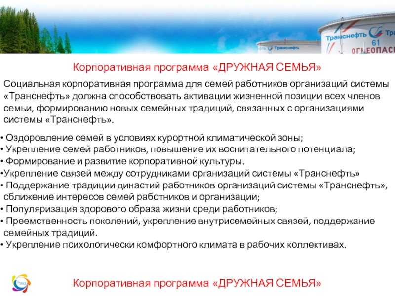 Поддержание традиции династий работников организаций системы «Транснефть», сближение интересов семей работников и организации;