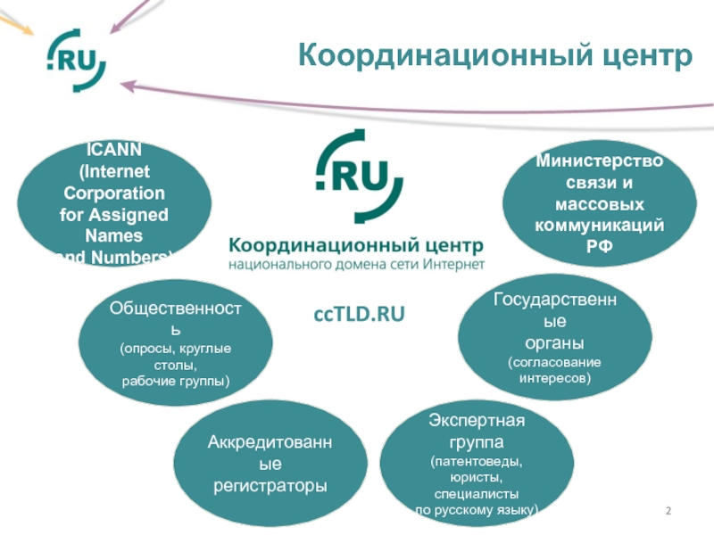 В ведении Координационного центра находятся вопросы, связанные с функционированием двух национальных доменов: домена .RU и нового кириллического домена .РФ