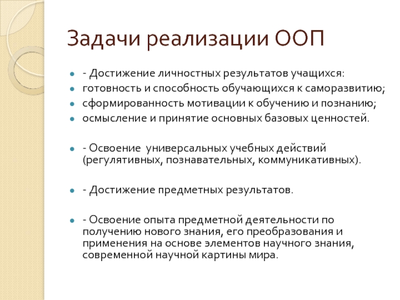 - Освоение универсальных учебных действий (регулятивных, познавательных, коммуникативных).