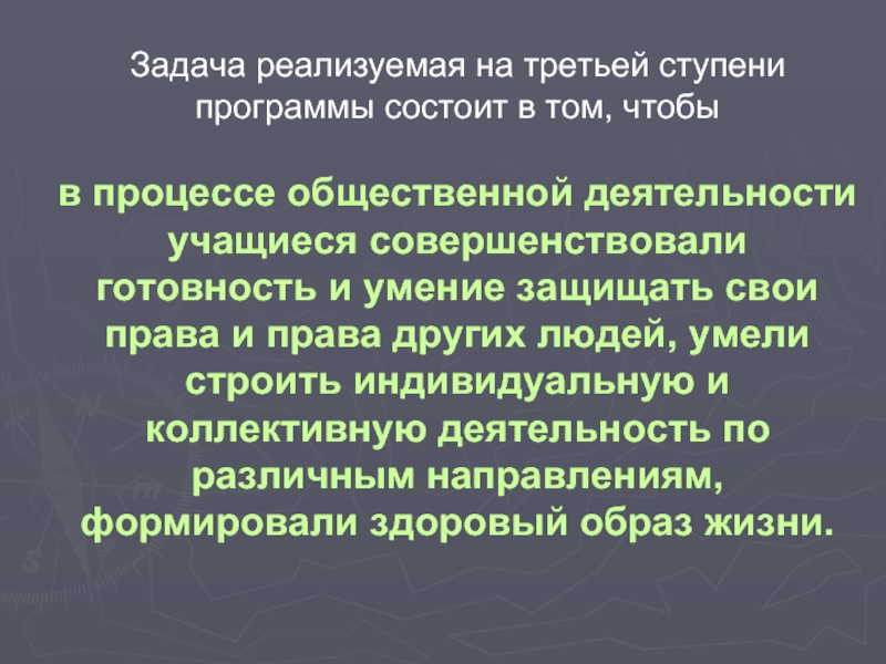 Слайд 19Задача реализуемая на третьей ступени программы состоит в том, чтобы