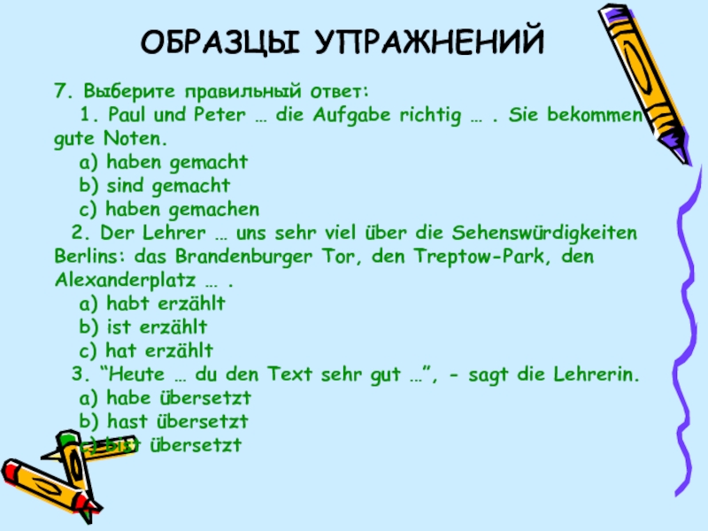 ОБРАЗЦЫ УПРАЖНЕНИЙ