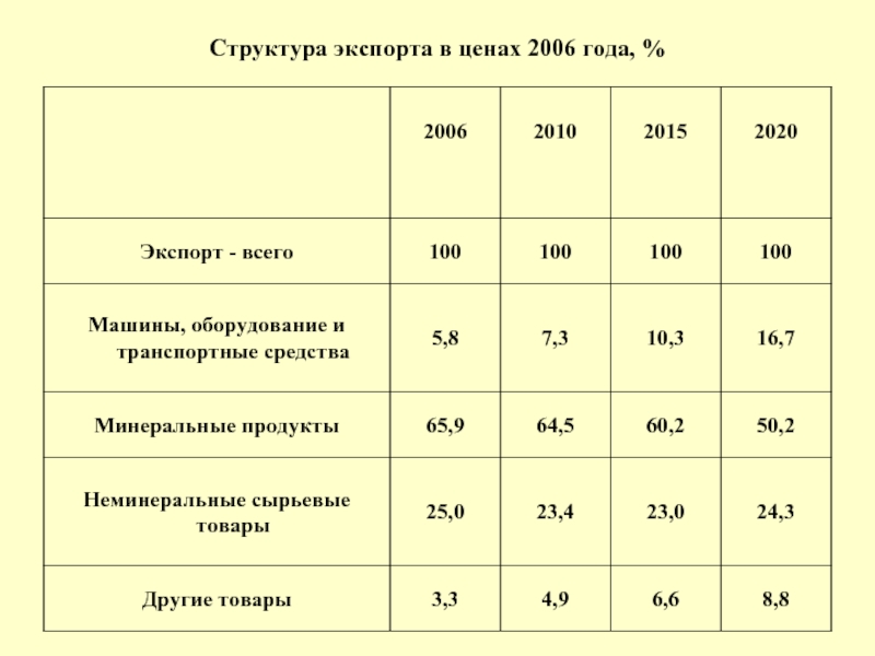 Слайд 41Структура экспорта в ценах 2006 года, %