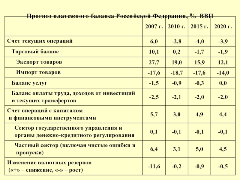 Слайд 14Прогноз платежного баланса Российской Федерации, % ВВП