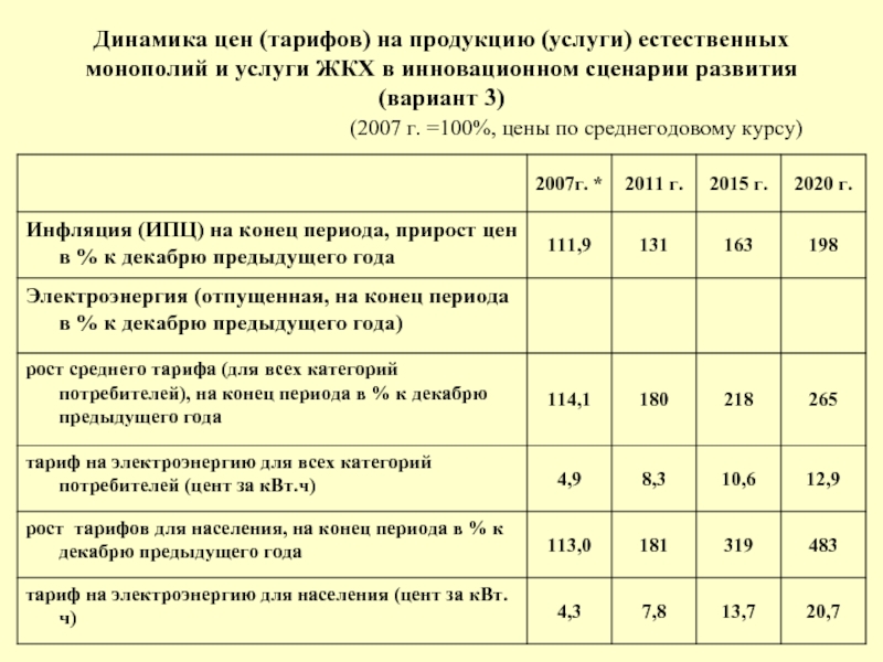 Слайд 27Динамика цен (тарифов) на продукцию (услуги) естественных монополий и услуги ЖКХ