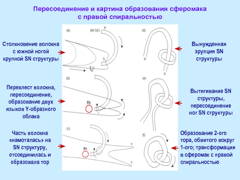 Образование 2-ого тора, обвитого вокруг 1-ого; трансформация в сферомак с правой спиральностью