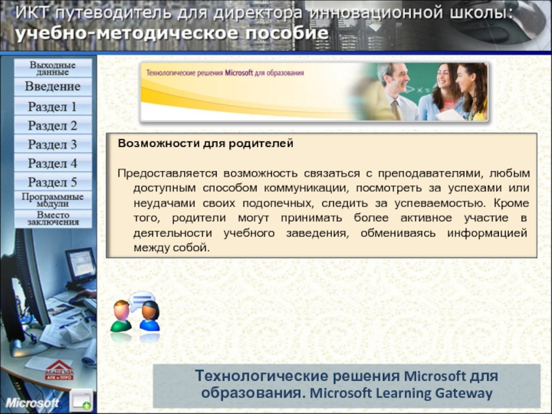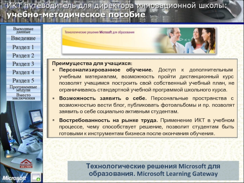 Слайд 26Технологические решения Microsoft для образования. Microsoft Learning Gateway