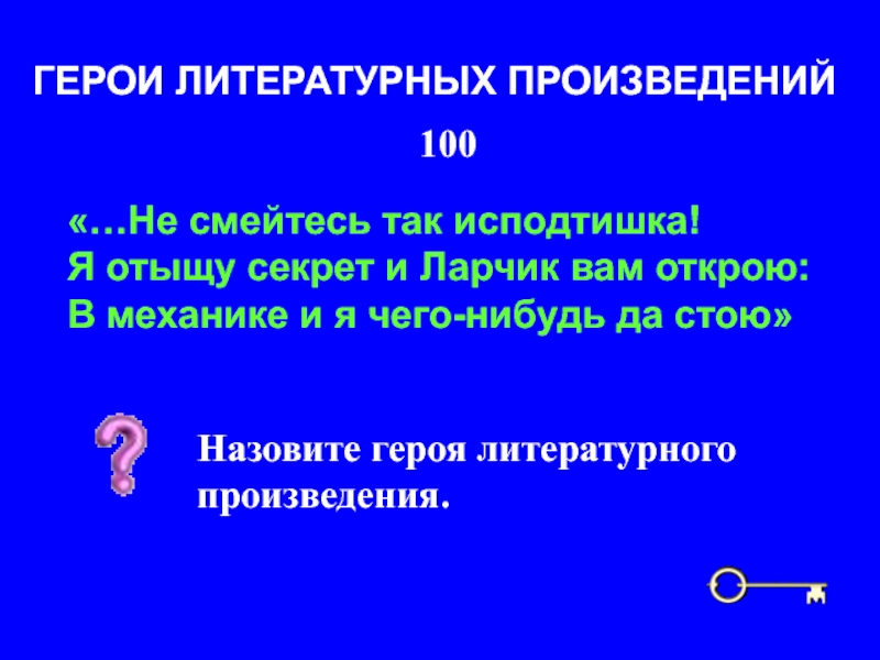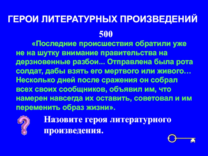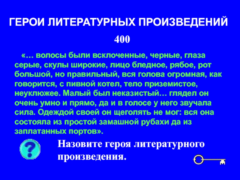 Назовите героя литературного произведения.