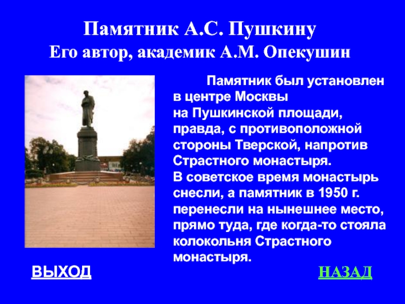 Его автор, академик А.М. Опекушин