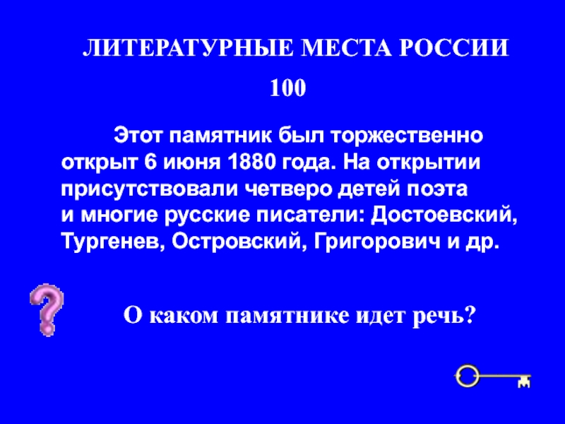 1880 года. На открытии присутствовали четверо детей поэта и многие русские писатели: Достоевский, Тургенев, Островский, Григорович и др.