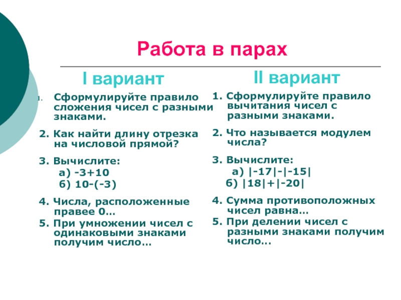 1. Сформулируйте правило вычитания чисел с разными знаками.
