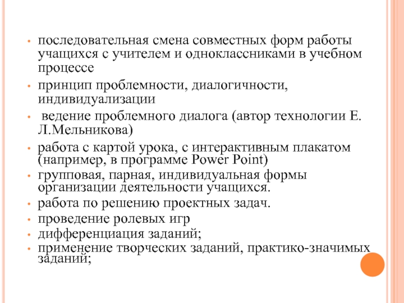 Слайд 20последовательная смена совместных форм работы учащихся с учителем и одноклассниками в
