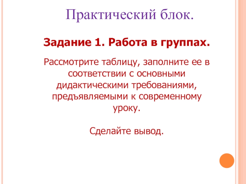 Урок современного типа с позиции основных дидактических требований (практическая работа);