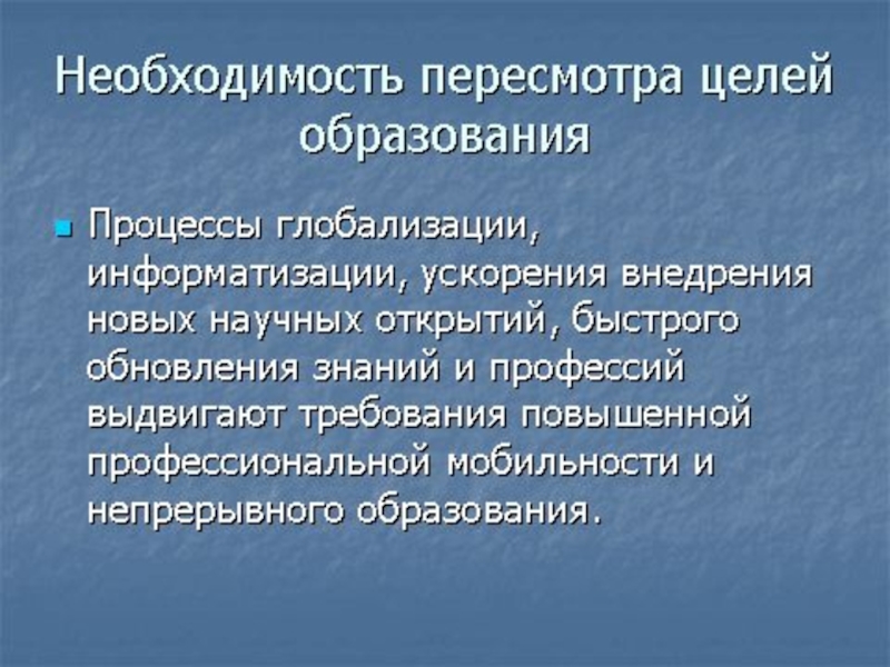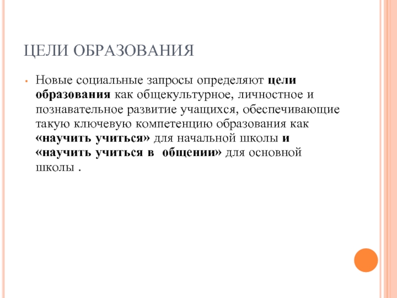 Новые социальные запросы определяют цели образования как общекультурное, личностное и