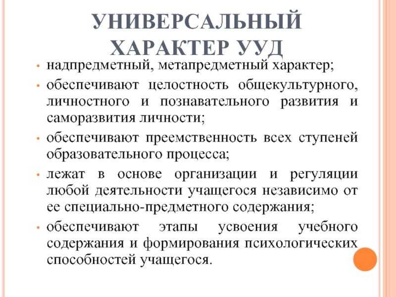 Слайд 8УНИВЕРСАЛЬНЫЙ ХАРАКТЕР УУД
