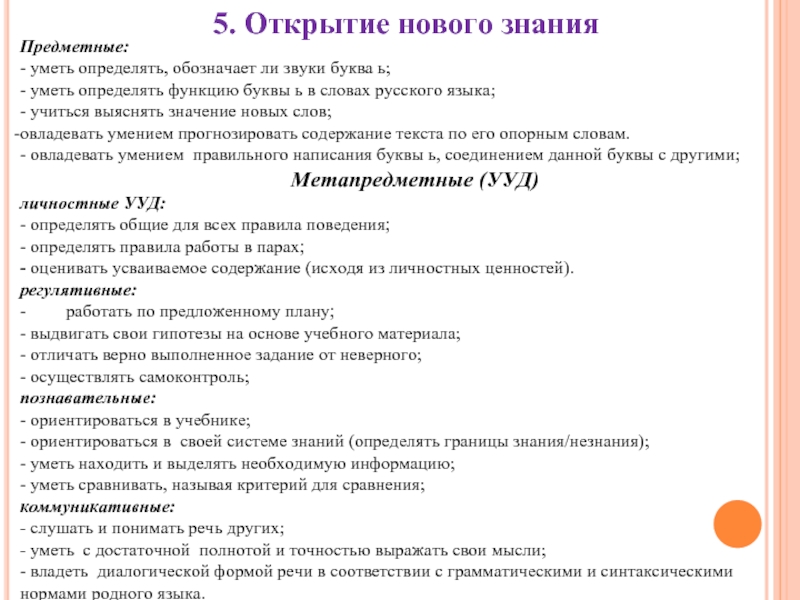 урока по теме «Буква Ь и ее особенности»» (отсутствие фрагментов в части «Формируемые умения» на каждом этапе урока).