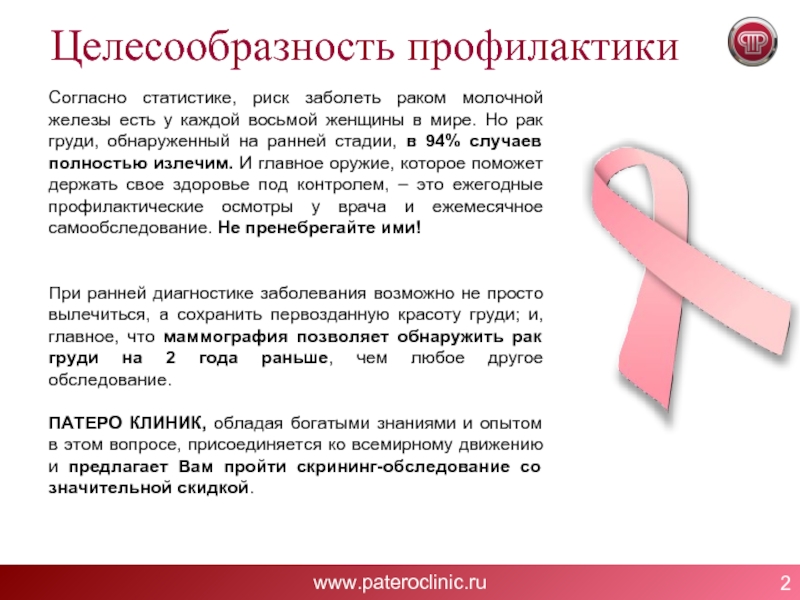 ПАТЕРО КЛИНИК, обладая богатыми знаниями и опытом в этом вопросе, присоединяется ко всемирному движению и предлагает Вам пройти скрининг-обследование со значительной скидкой.