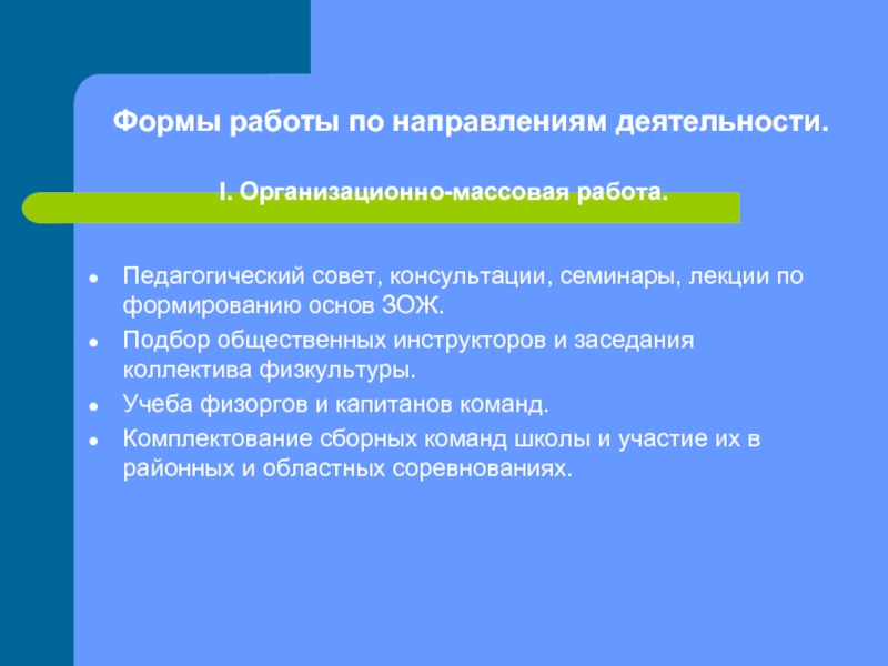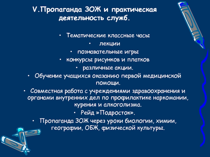 V.Пропаганда ЗОЖ и практическая деятельность служб.