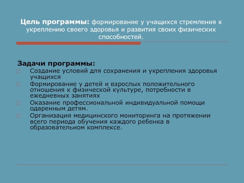 Организация медицинского мониторинга на протяжении всего периода обучения каждого ребенка в образовательном комплексе.