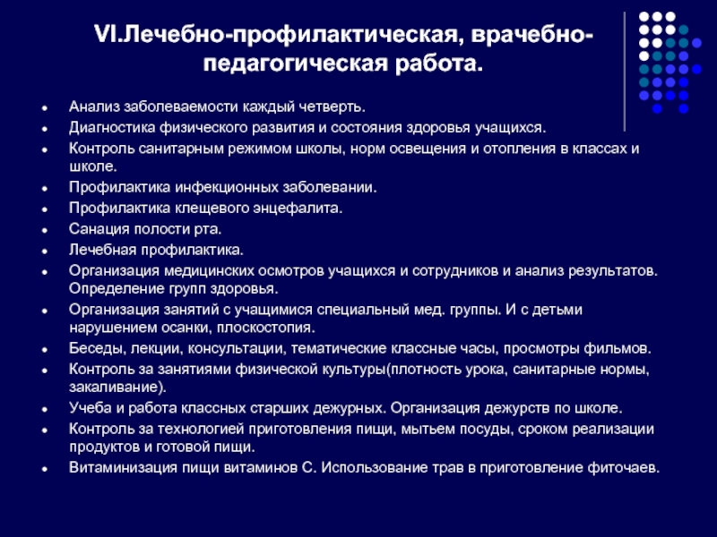 VI.Лечебно-профилактическая, врачебно-педагогическая работа.