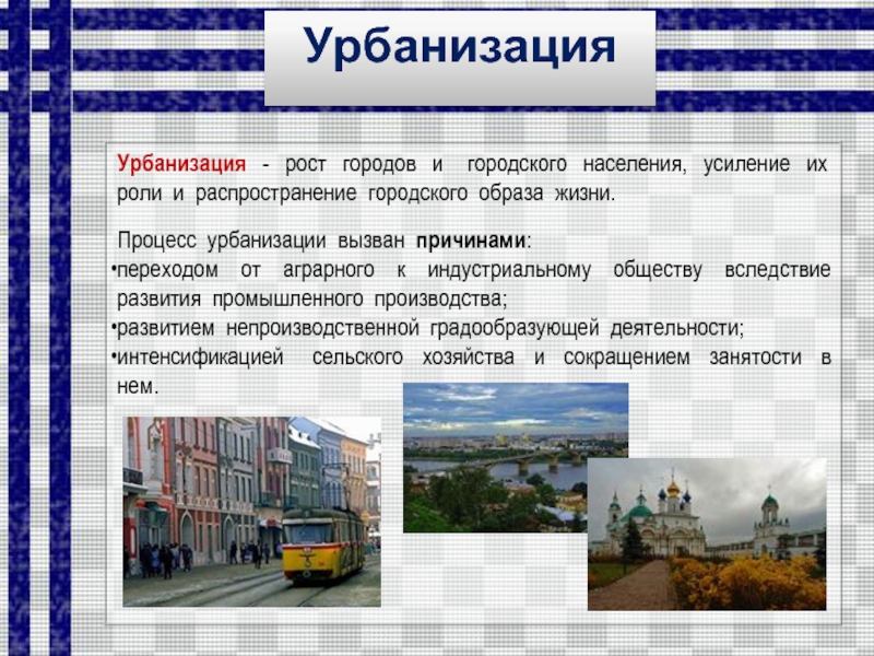 Процесс урбанизации вызван причинами: