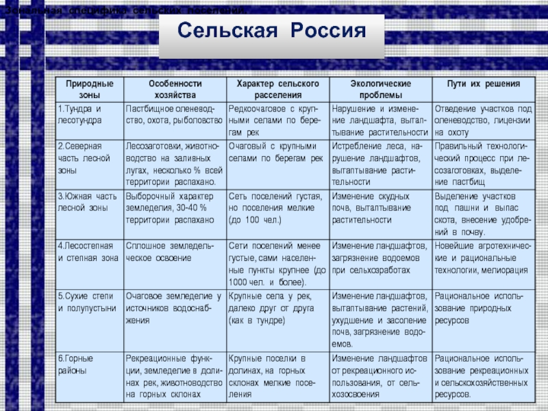 Зональная специфика сельских поселений.