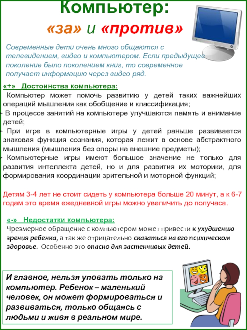 И главное, нельзя уповать только на компьютер. Ребенок – маленький человек, он может формироваться и развиваться, только общаясь с людьми и живя в реальном мире.