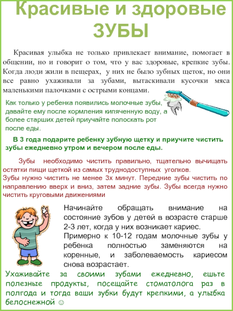 В 3 года подарите ребенку зубную щетку и приучите чистить зубы ежедневно утром и вечером после еды.