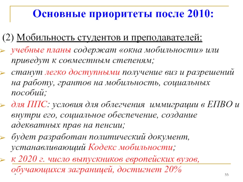 к 2020 г. число выпускников европейских вузов, обучающихся заграницей, достигнет 20%