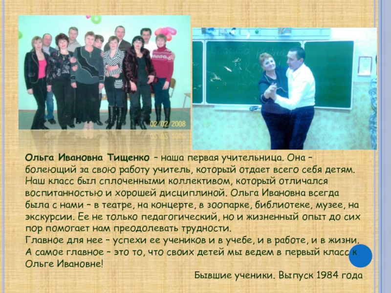 Татьяна Алексеевна Дедкова – мама Ольги Ивановны – проработала в средней школе №6 33 года учителем биологии. Это она привила маленькой Олечке любовь к детям и желание работать в школе.