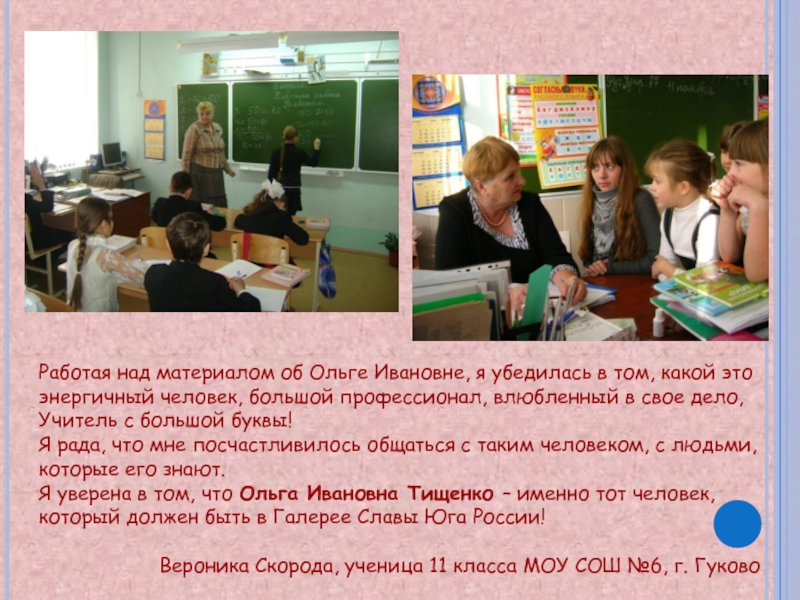 Такой Ольга Ивановна пришла работать в среднюю школу №6 вожатой