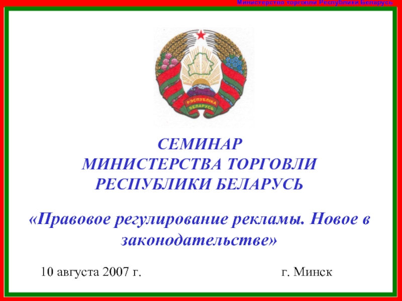 постановление Совета Министров Республики Беларусь от 22 апреля 2005 г. № 183 «Об утверждает Комплекс мероприятий по развитию рекламного бизнеса с учетом национальных интересов и иным вопросам совершенствования рекламной деятельности»;