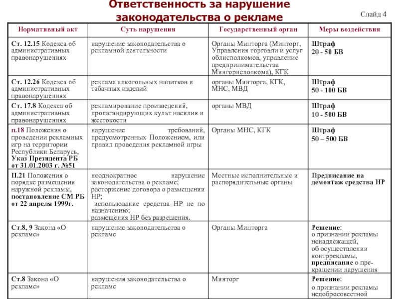 постановление Министерства торговли Республики Беларусь, Министерства юстиции Республики Беларусь, Министерства информации Республики Беларусь 30 марта 2007 г. № 19/25/5 «О размещении рекламы риэлтерскими организациями»;
