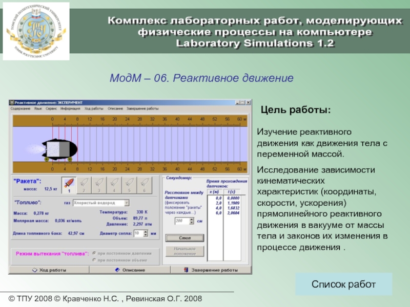 Исследование зависимости кинематических характеристик (координаты, скорости, ускорения) прямолинейного реактивного движения в вакууме от массы тела и законов их изменения в процессе движения .