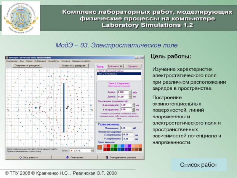 Изучение характеристик электростатического поля при различном расположении зарядов в пространстве.