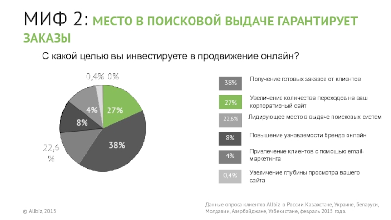 Данные опроса клиентов Allbiz в России, Казахстане, Украине, Беларуси, Молдавии, Азербайджане, Узбекистане, февраль 2015 года.