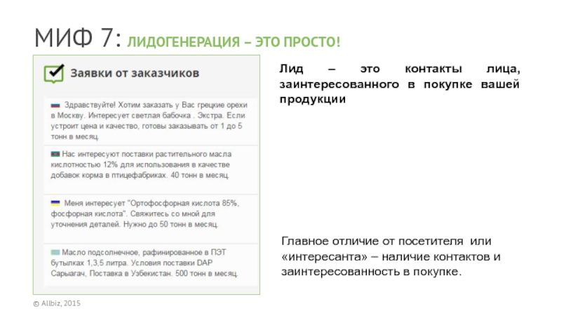 Главное отличие от посетителя или «интересанта» – наличие контактов и заинтересованность в покупке.