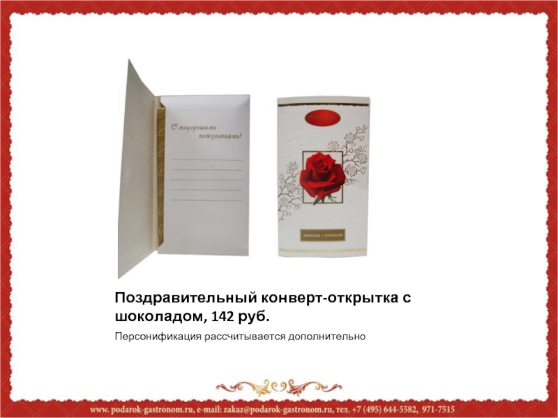 Слайд 2Поздравительный конверт-открытка с шоколадом, 142 руб.