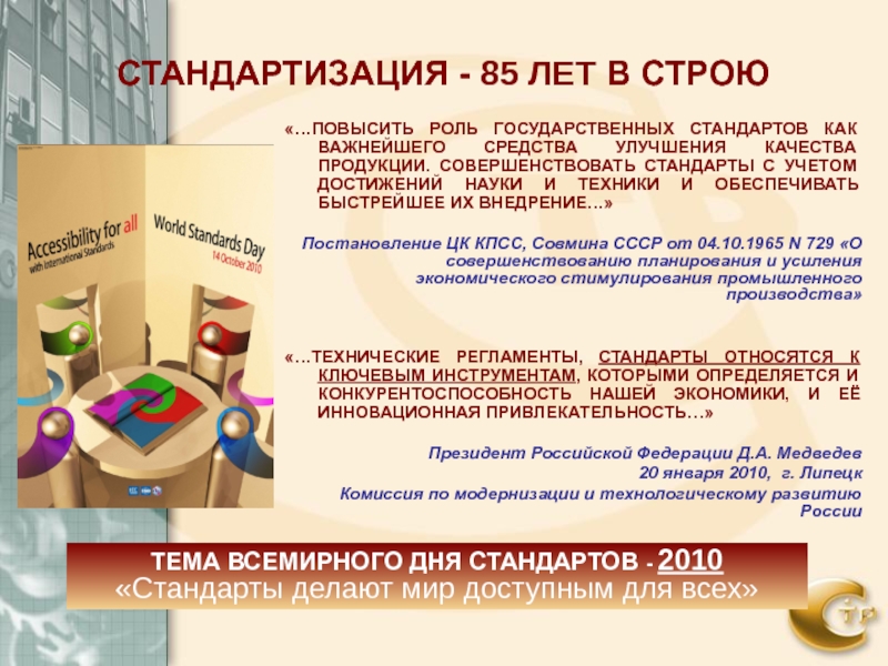 ТЕМА ВСЕМИРНОГО ДНЯ СТАНДАРТОВ - 2010