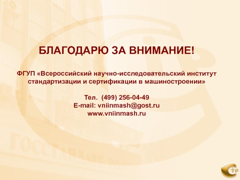 ФГУП «Всероссийский научно-исследовательский институт стандартизации и сертификации в машиностроении»