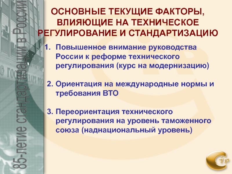 ОСНОВНЫЕ ТЕКУЩИЕ ФАКТОРЫ, ВЛИЯЮЩИЕ НА ТЕХНИЧЕСКОЕ РЕГУЛИРОВАНИЕ И СТАНДАРТИЗАЦИЮ