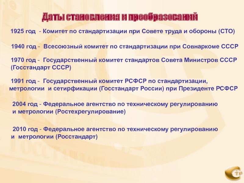2010 год - Федеральное агентство по техническому регулированию и метрологии (Росстандарт)