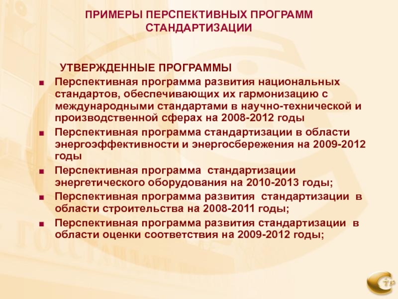 Перспективная программа развития стандартизации в области оценки соответствия на 2009-2012 годы;
