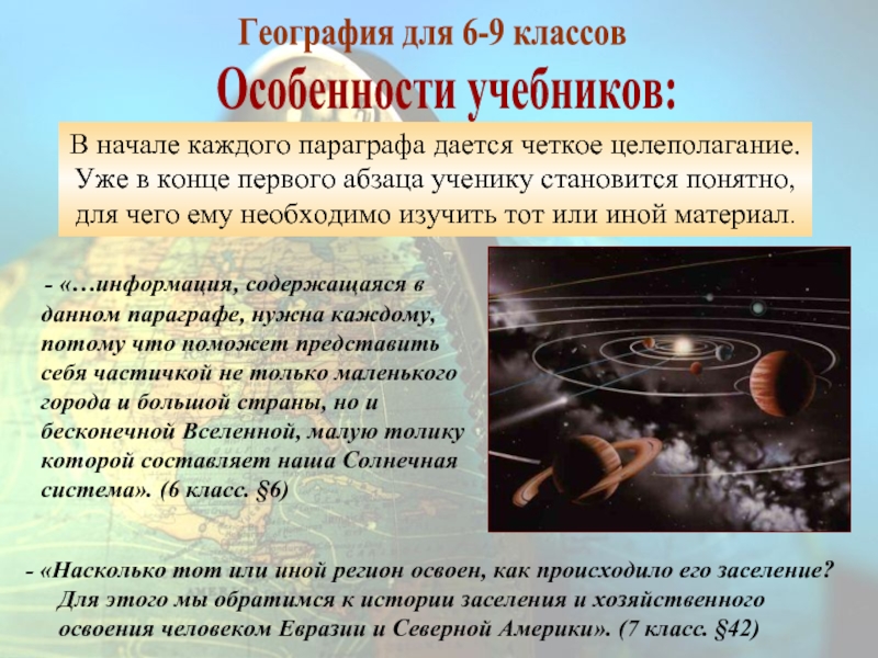 - «Насколько тот или иной регион освоен, как происходило его заселение? Для этого мы обратимся к истории заселения и хозяйственного освоения человеком Евразии и Северной Америки». (7 класс. §42)