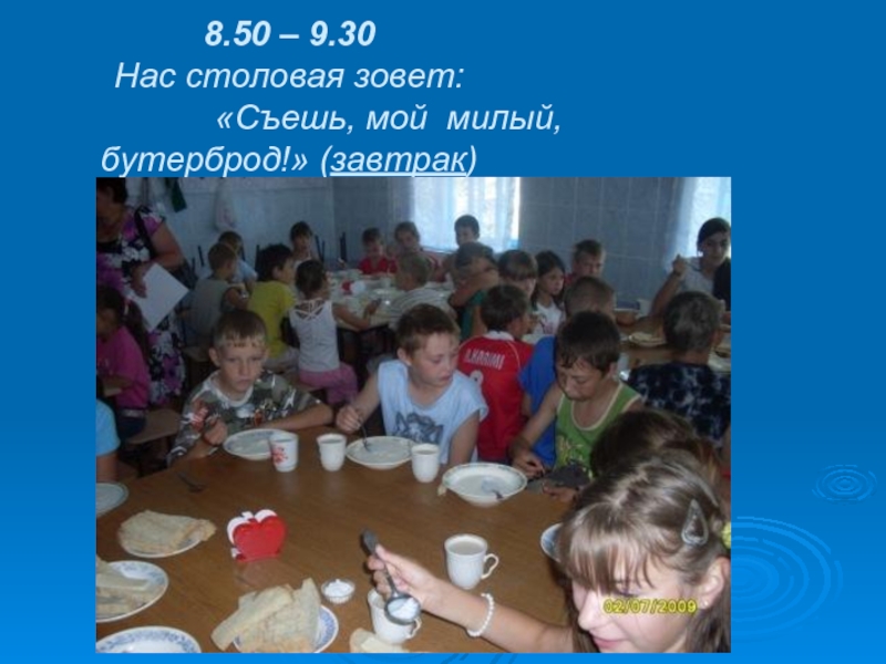 Слайд 228.50 – 9.30 Нас столовая зовет: