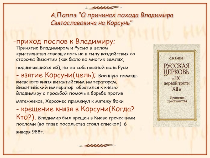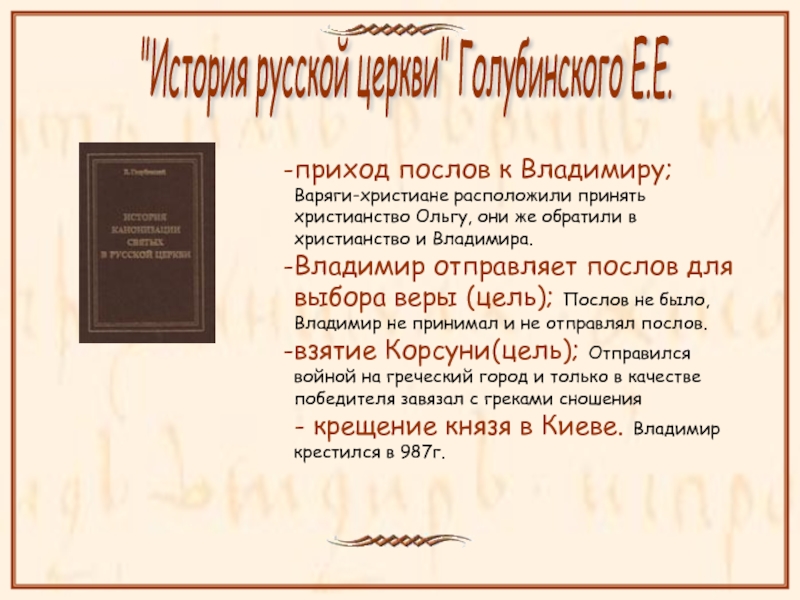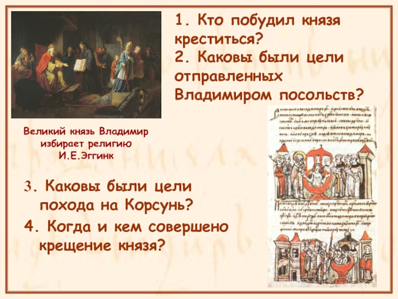 Соседние с Киевской Русью государства исповедовали религии, основу которых составлял монотеизм, т. е. вера в единого Бога. В Византии господствовало христианство, в Хазарии — иудаизм, в Волжской Булгарии — ислам. Однако наиболее тесные связи существовали у Руси с христианской Византией.