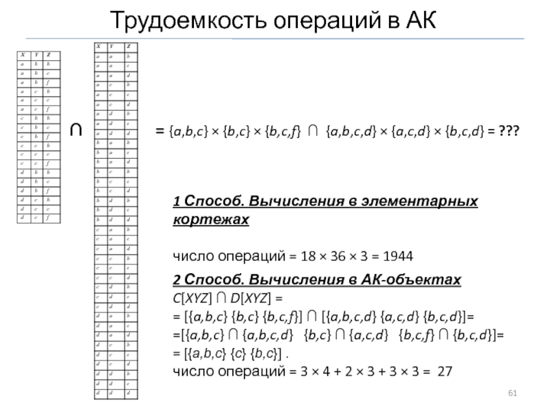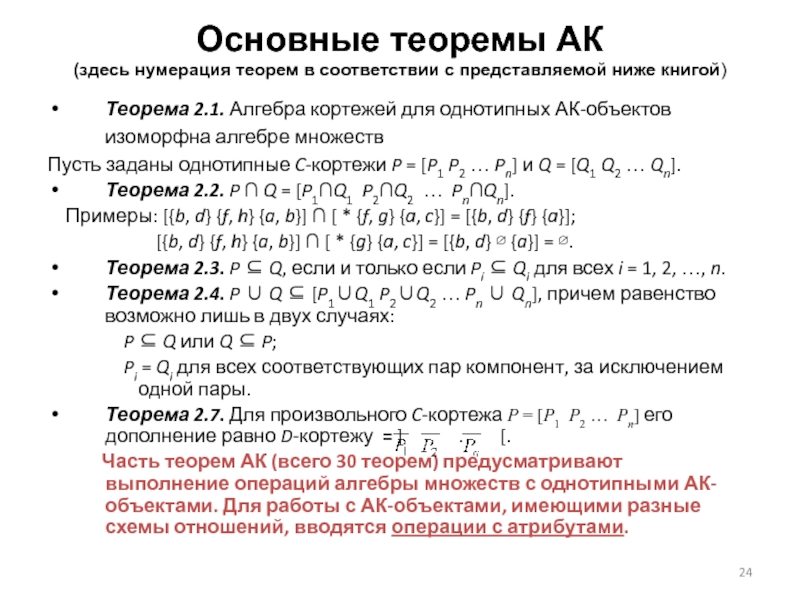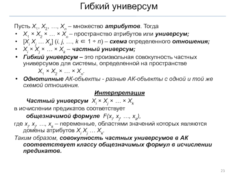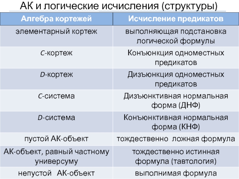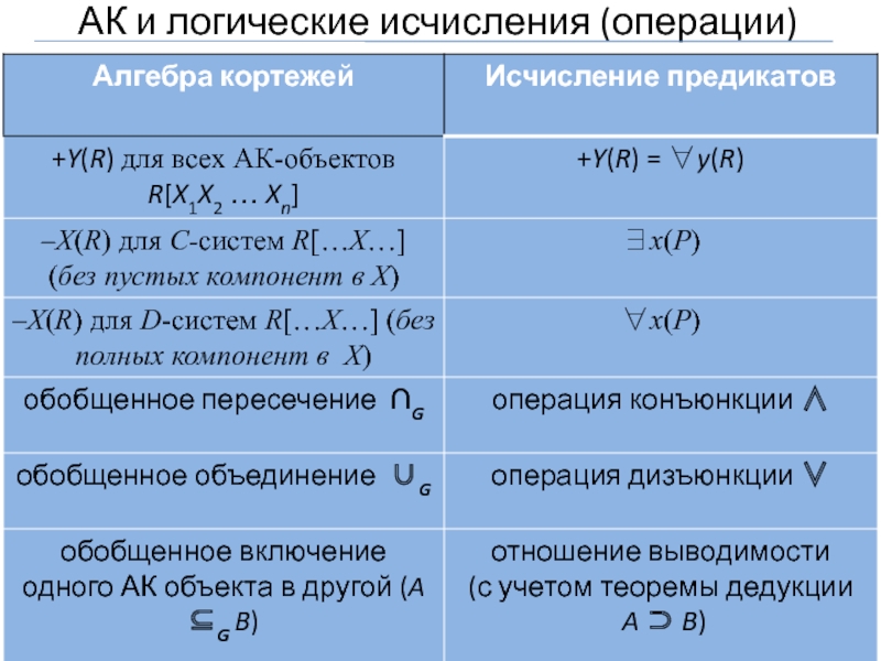 Каждый АК-объект можно интерпретировать как множество элементарных кортежей.