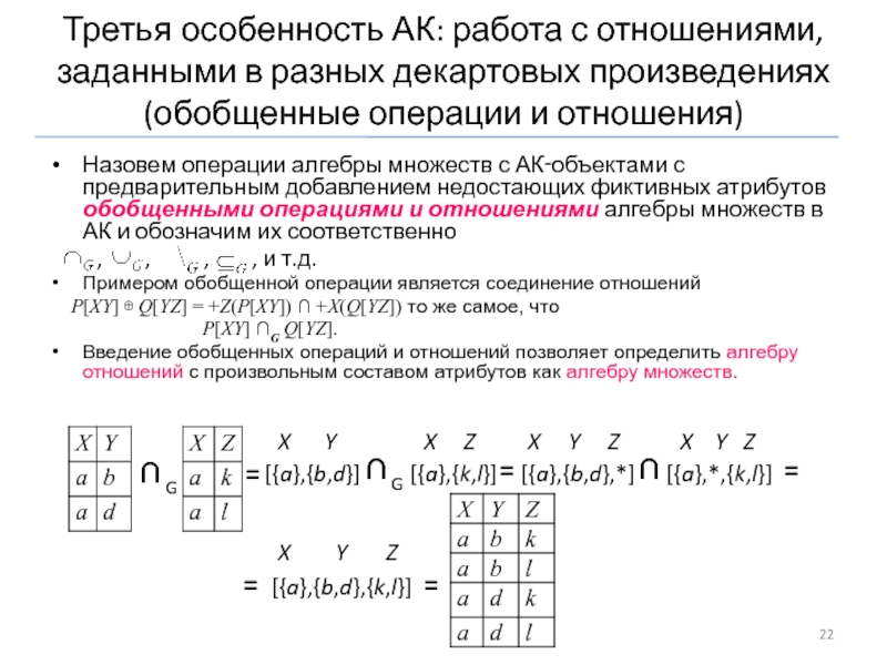 Обобщенные операции и отношения (∩G, ∪G, \G , ⊆G, = G )