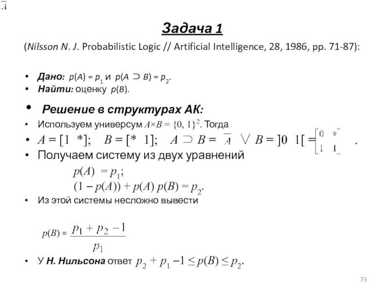 (Nilsson N. J. Probabilistic Logic // Artificial Intelligence, 28,