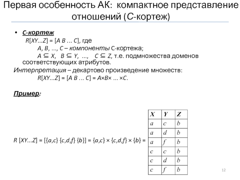 Слайд 12Первая особенность АК: компактное представление